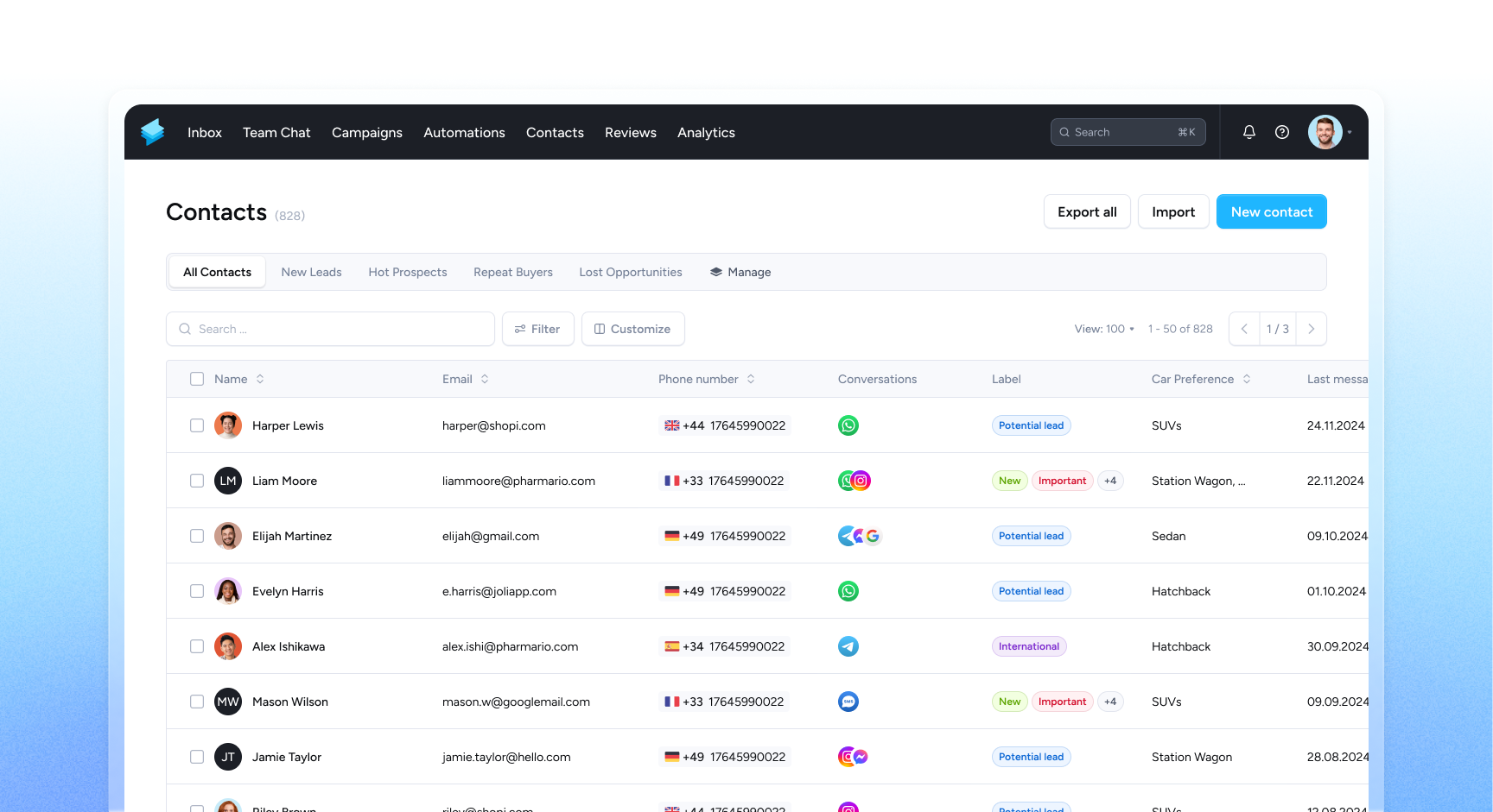 Messaging solutions like Superchat offer integrations for traditional CRM platforms such as HubSpot, Zoho CRM, and Pipedrive, ensuring that all contacts are always synchronized and no information is lost. Companies with a sales team require a more comprehensive CRM solution like HubSpot or Pipedrive to effectively map their sales pipeline.