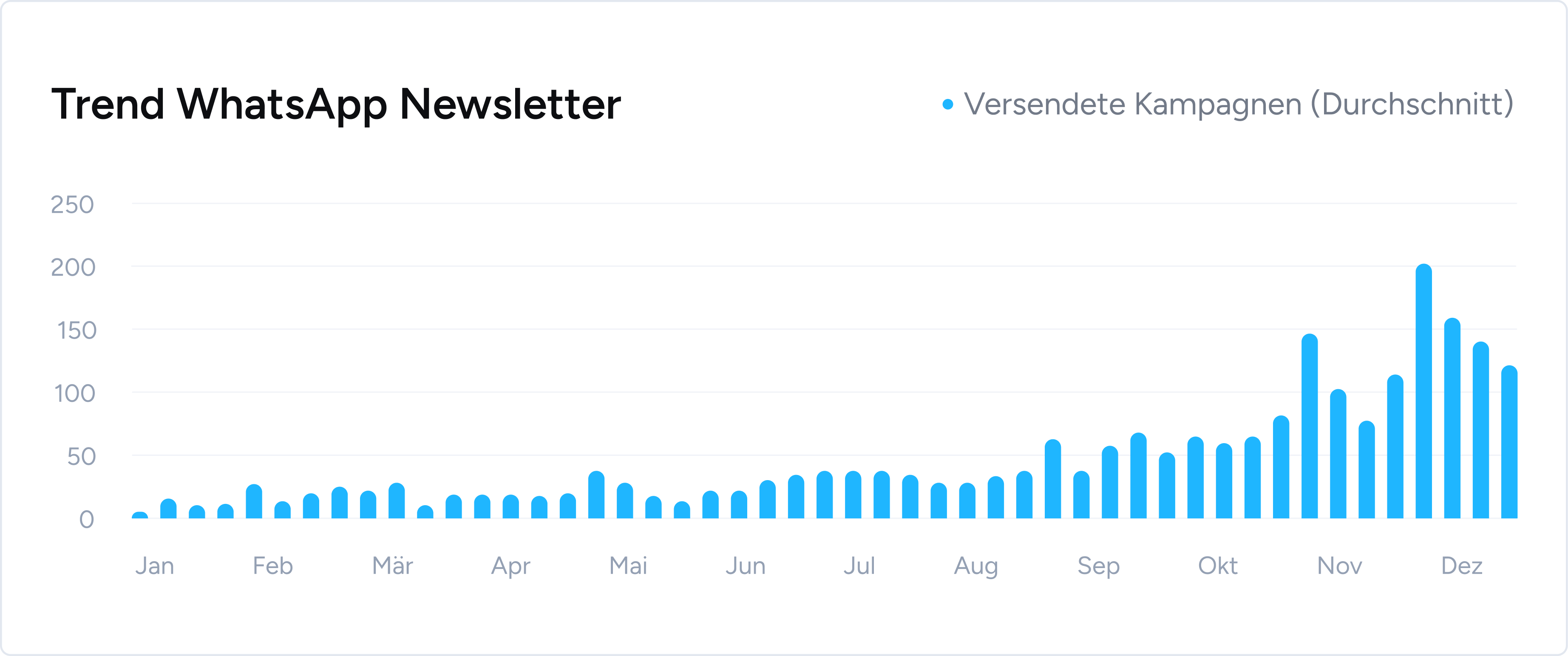 It is also clear that the popularity of WhatsApp newsletters has increased significantly by the end of 2022. For example, businesses are using the messenger to inform customers about important promotions such as Black Friday. Detailed data on WhatsApp API usage and superchat campaigns can be found in the 2023 Messaging Report.