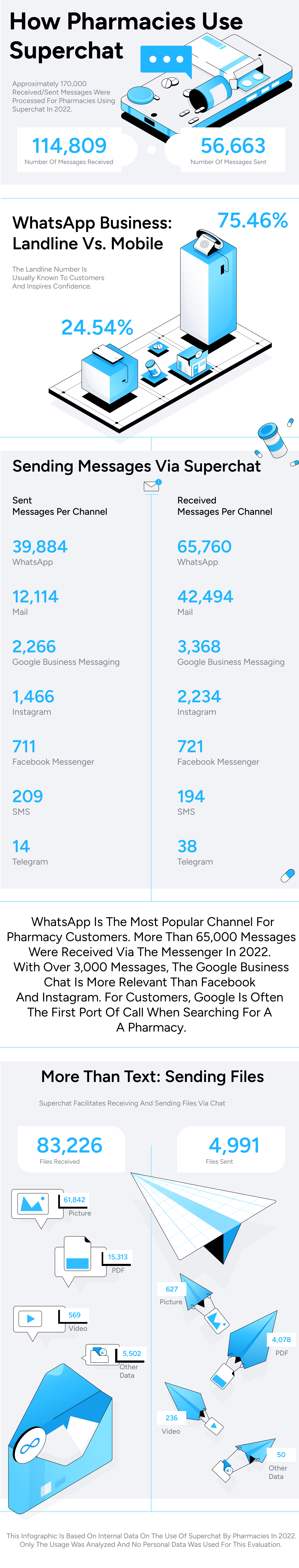 Personal data or anything similar was not considered for the study. It simply looks at how pharmacies are using Superchat's messaging platform. The following figures illustrate how important messaging is in this industry: