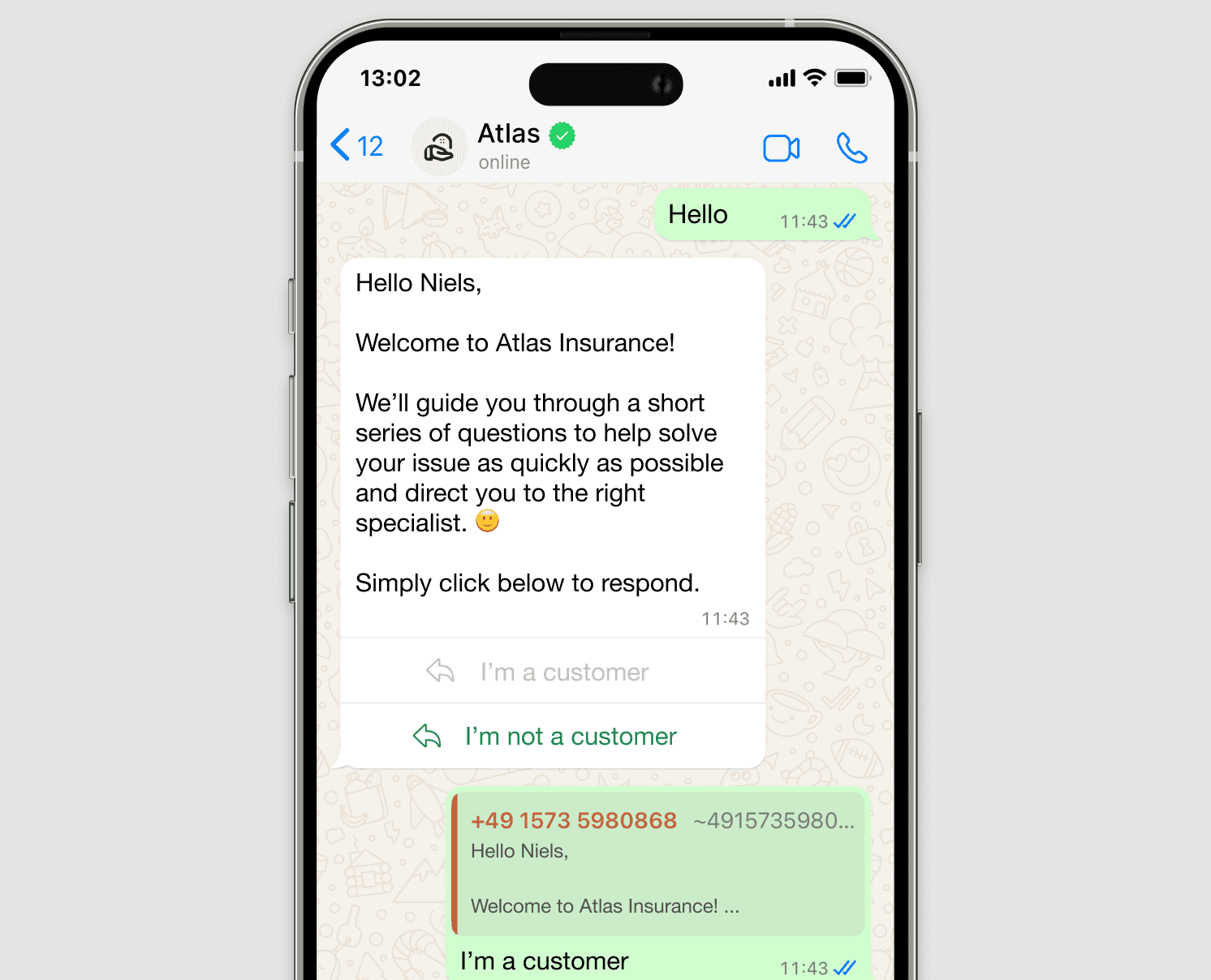 Your communication runs through the official WhatsApp Business API and is hosted exclusively on German servers, ensuring GDPR-compliant customer communication via WhatsApp.