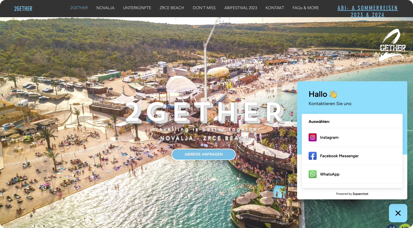 With Superchat's web chat, companies can offer powerful communication channels to start conversations on their own website. 2GETHER Travel integrates WhatsApp, Instagram and Facebook, although it says WhatsApp is the most popular.
