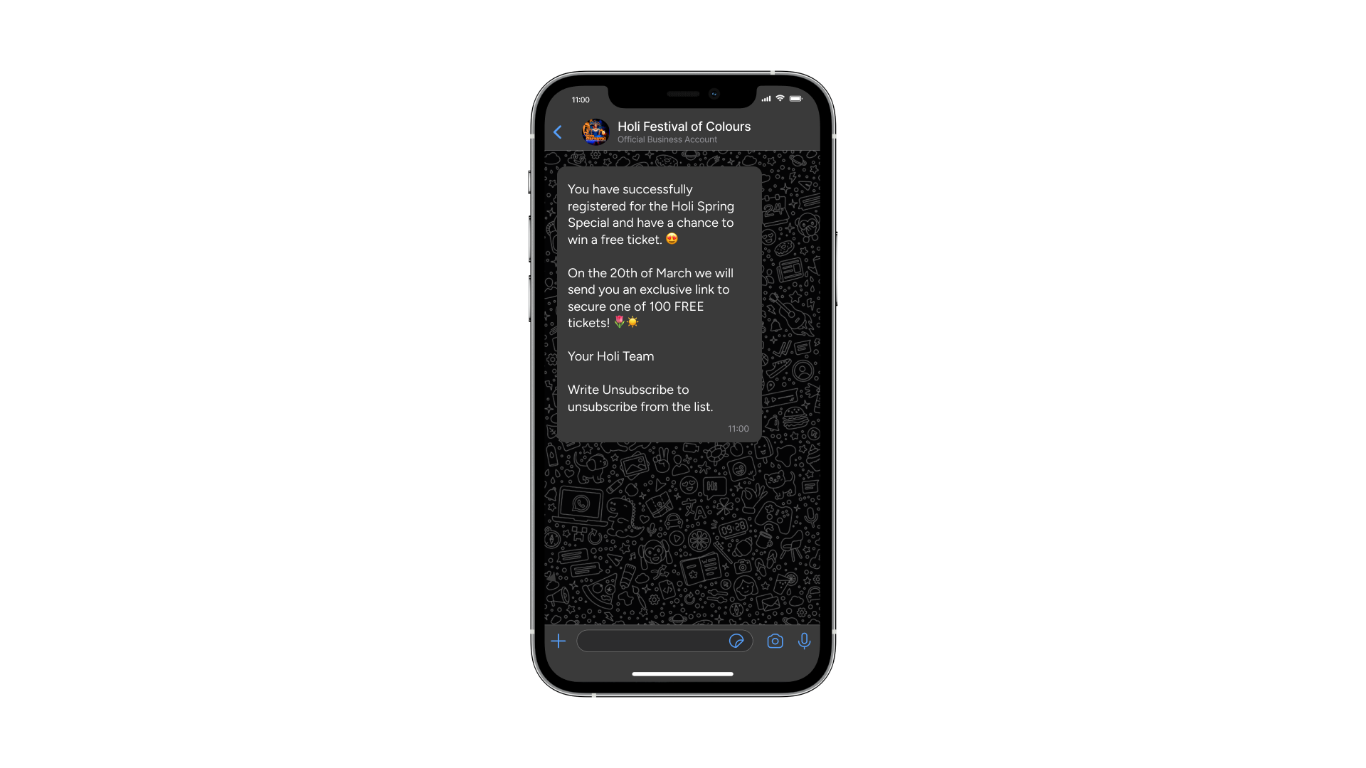 The Holi Festival has launched a successful WhatsApp newsletter with monthly ticket draws. Every few weeks, subscribers receive a link to an exclusive prize draw.