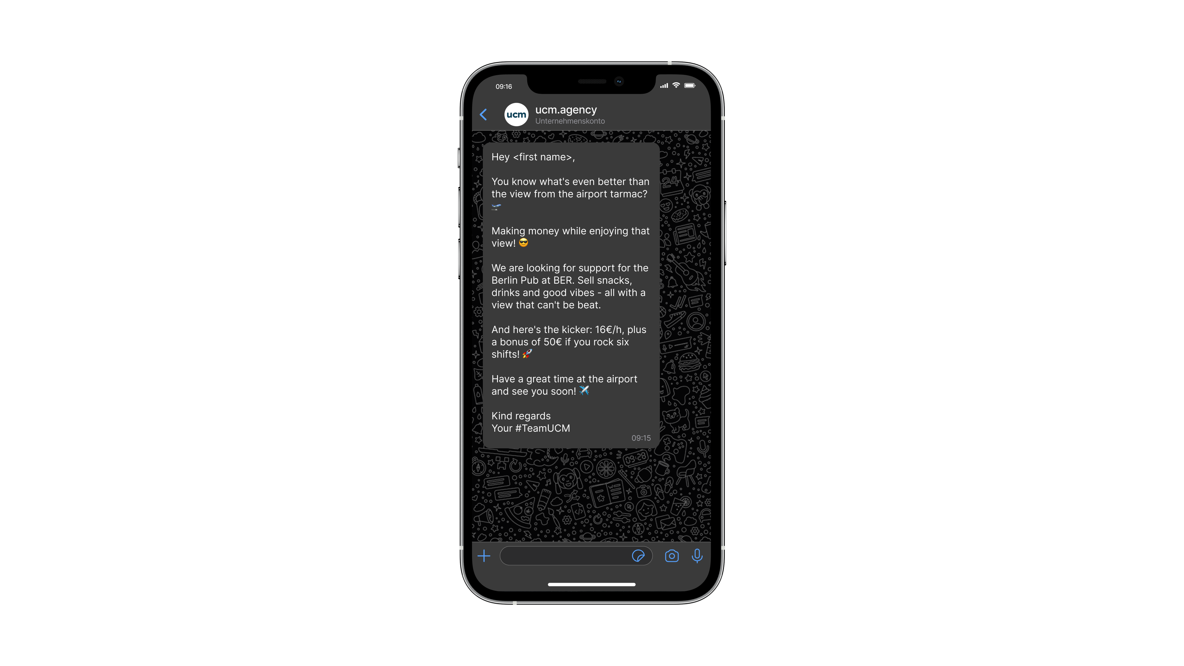 With the WhatsApp newsletter, ucm.agency can forward new job offers to interested students with just a few clicks. Here too, the messenger outperforms traditional communication channels, with an average open rate of 98 per cent.